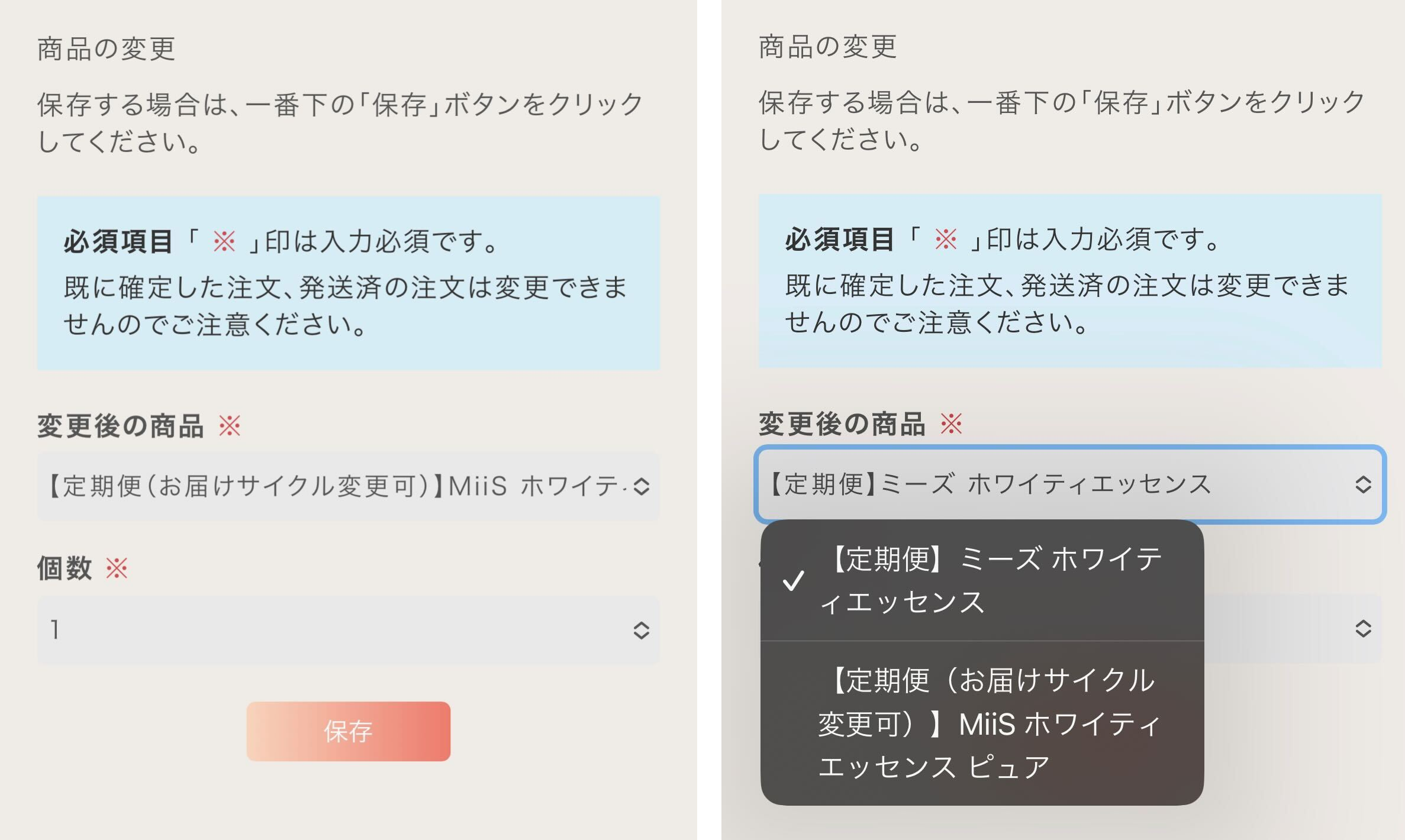 MiiSのホワイトニングジェルはフレーバーが複数あり、定期購入の途中でフレーバーを変更できるようマイページを改修しました。毎月商品を受け取るのが面倒というお客様向けに、商品をまとめて発送する手続きもマイページでできるようにしています。この実装で、お客様ご自身のニーズに合わせてマイページで変更、手続きをしてくださる方が増えていて、必要以上のアナウンスをせずともマイページの機能も便利に活用してくださっています。これも、ecforceのお客様側のマイページの使いやすさによるものだと感じています。
