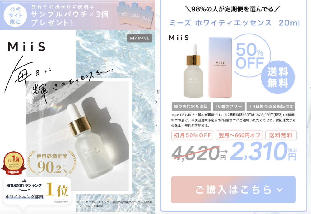 MiiSでは、まずホワイトニングジェルを開発し、2021年7月にECサイトで販売をスタートしました。長く利用して欲しいという想いから、当初から定期販売を主軸に考えており、定期販売で成功している他のブランドが最も活用しているシステムがecforceだったので導入を決めました。当時、ECの立ち上げ経験のある社員がいなかったため、ECサイトの仕組みを把握しながらの立ち上げにはなったものの、スムーズに導入から実運用まで開始できました。