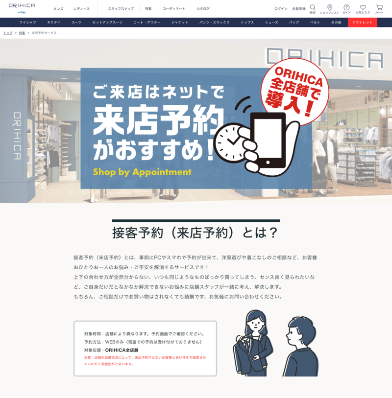 AOKIが展開する「ORIHICA」オンラインショップの来店予約ページにおいて「ecforce check」を導入