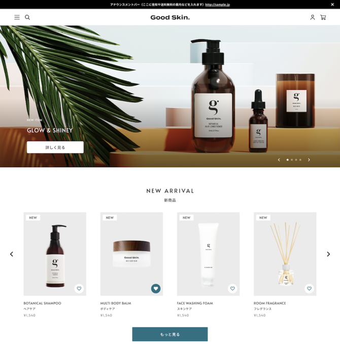 これまで自社でR&D事業としてD2Cブランドの運営を展開するなかで、データに基づいたUI/UXを追求し、得られたSUPER STUDIO独自のノウハウをテンプレートに詰め込んでいます。提供開始直後は複数SKU(複数商品ライナップ)を販売する基本的なECサイトの構築に対応。その後テンプレートやデザインパーツのパターンを順次追加してまいります。