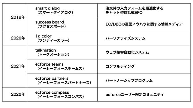 これまでリリースしたecforceにまつわる各種プロダクト・サービス名称を以下のように刷新いたします。