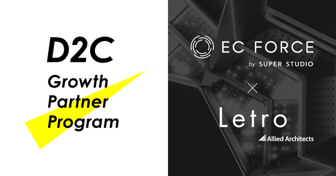 アライドアーキテクツとSUPER STUDIOは、D2C企業の支援にむけた戦略的パートナーシップを締結。「D2C Growth Partner Program」の提供を通して、D2C企業の「顧客起点」シフトを実現し、高速な事業成長を支援してまいります。アライドアーキテクツはこれまでにダイレクトマーケティング特化型UGC活用ソリューション「Letro」を通して、D2Cメーカーや通販企業へのマーケティング支援実績を多数作っています。また、SUPER STUDIOは、D2Cビジネスモデルに特化したEC基幹システム「EC Force」やD2C商品の企画開発の支援を通して、ECを幅広く支援しています。今回のパートナーシッププログラムを通して、2社の知見を融合・連携することで、より高品質なご支援とノウハウ発信を推進してまいります。